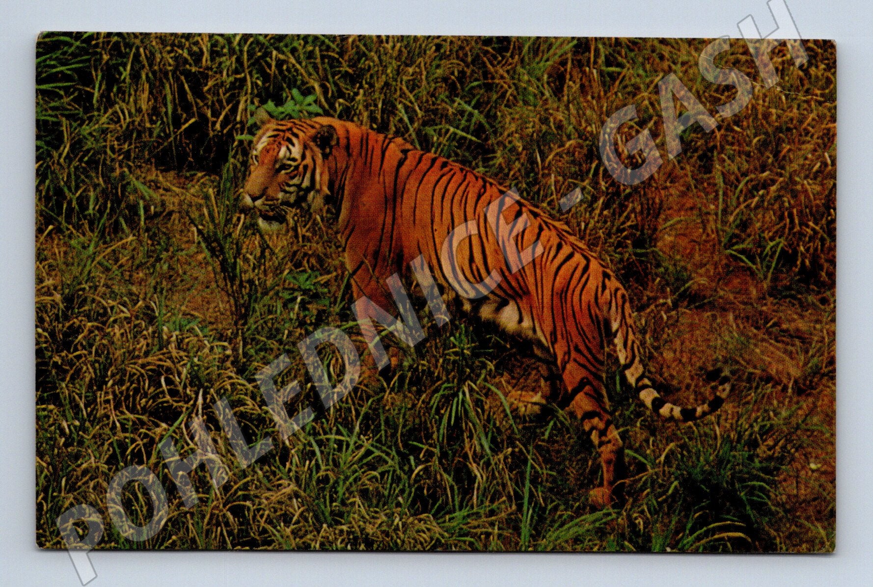 Nabízím originální pohlednici s motivem indického tygra (Indian Tiger) pohybujícího se v travnaté krajině. Jedná se o zaslanou pohlednici, na zadní straně s originálním textem v češtině a angličtině, adresovanou do ČSSR v roce 1976. Pohlednice je opatřena britskými známkami s razítky. Stav: odpovídá stáří, drobné známky opotřebení. Krásný sběratelský kousek pro milovníky zvířat nebo poštovní historie.