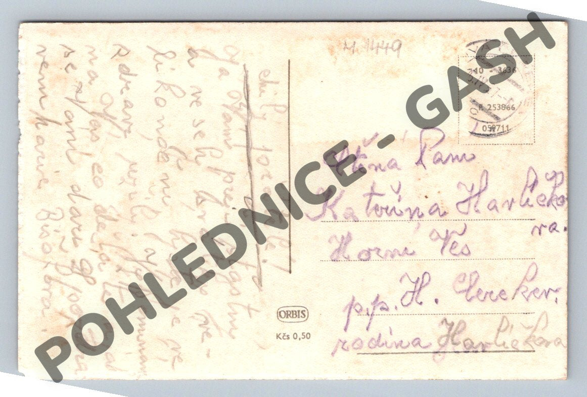 Velikonoční pohlednice s českým etnografickým motivem, zobrazující tradiční kroje a zvyky na venkově. Pohlednice nese nápis Veselé velikonoce a je vyvedena v černobílém provedení. Na obrázku jsou děti v lidových krojích v přírodě při tradičních velikonočních oslavách. Pohlednice je prošlá poštou, s ručně psaným vzkazem a adresou. Známky stáří jsou patrné zejména na okrajích a na zadní straně pohlednice. Zajímavý sběratelský kousek pro milovníky tradic, folkloru a velikonočních motivů.