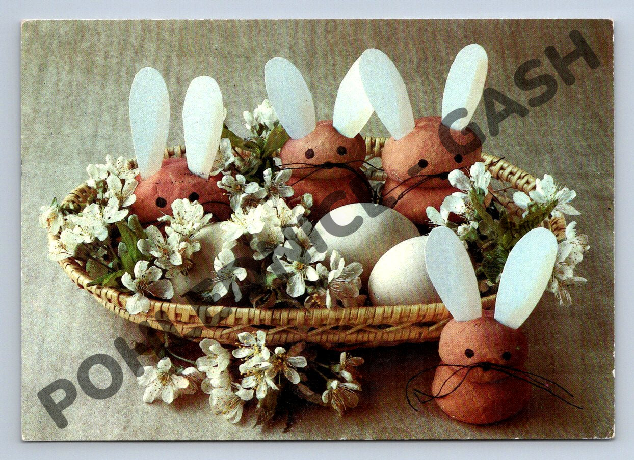 Pohlednice Velikonoční košík se zajíčky NDR (M1506)