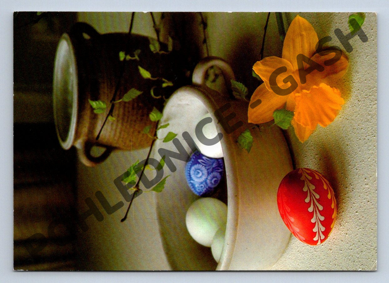 Velikonoční pohlednice ČSSR 1988 – kraslice, narcis, použitá