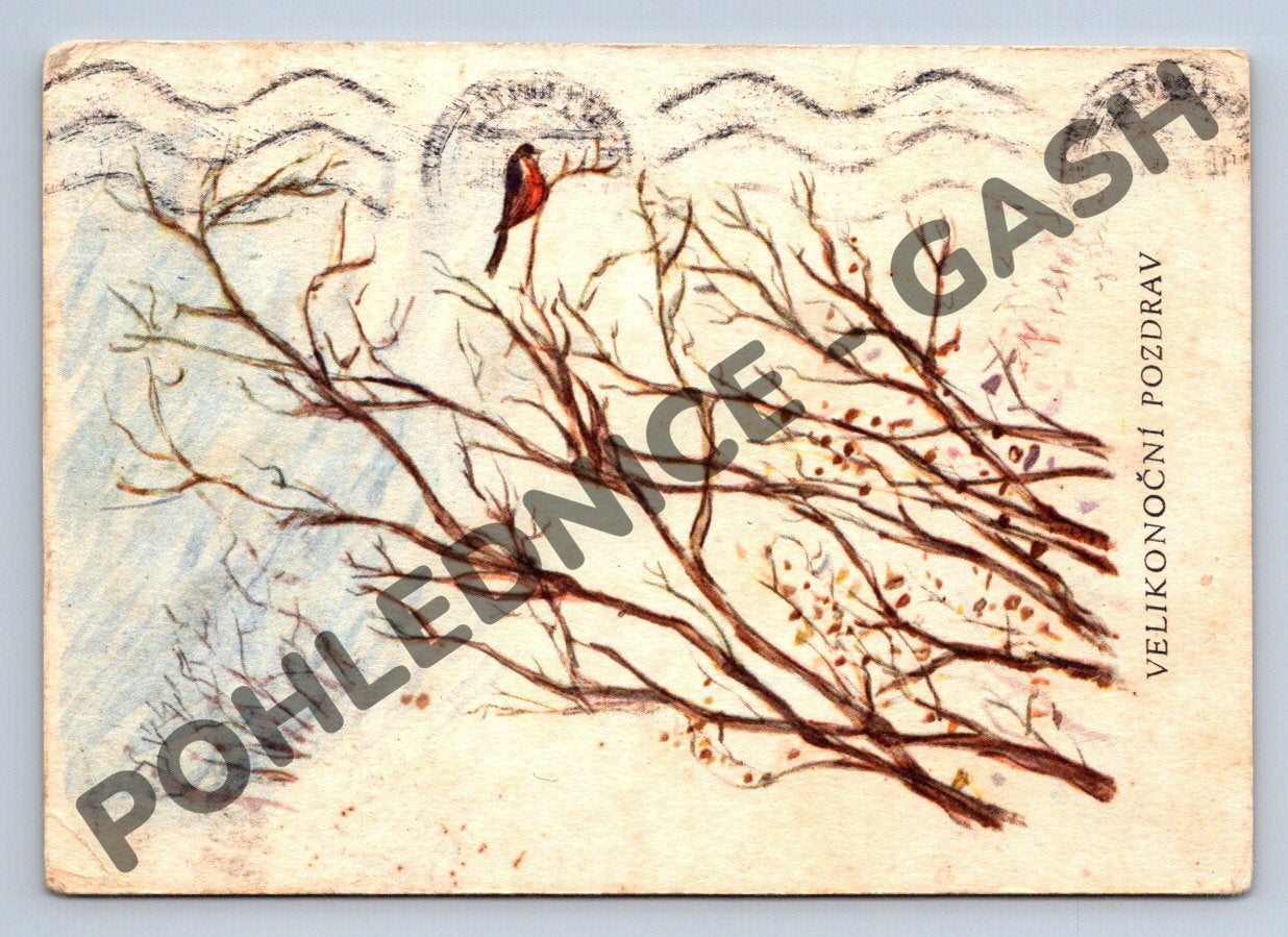 Velikonoční pohlednice s ptáčkem – Československo 1951, malý formát