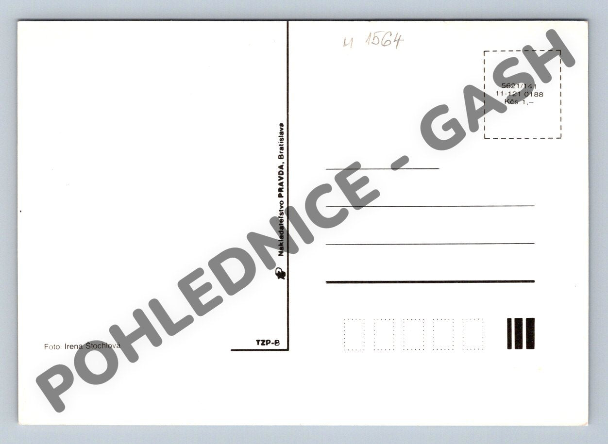 Pohlednice s velikonoční tematikou. Na přední straně je barevná fotografie tradiční folklórní dekorace – keramický džbán s proutky kočiček (jíva) a kraslicemi, zdobenými typickou ruční malbou. Jde o motiv spojený s českými a slovenskými velikonočními tradicemi. Zadní strana nepopsaná, tisk Nakladatelstvo PRAVDA, Bratislava. Foto Irena Štochlová. Výborný stav, vhodná do sbírky, krásný příklad lidového umění a tradic střední Evropy.