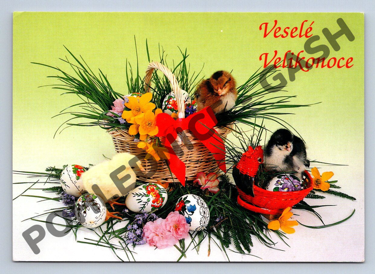 Velikonoční pohlednice s kuřátky a kraslicemi, ČR 1999