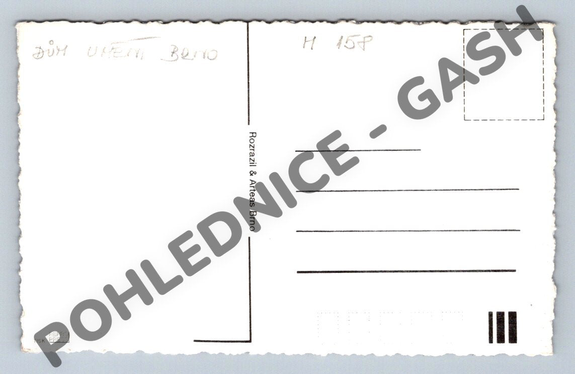 Originální historická pohlednice zachycující Dům umění města Brna a okolní architekturu v centru Brna. Na snímku vyniká elegantní secesní budova Domu umění, v pozadí rozpoznatelné věže a další historické stavby. Pohlednice má okraje typické pro starší vydání, na zadní straně je vyznačen prostor pro známku a adresu, vydavatel Rozrazil & Arteas Brno. Výborný sběratelský stav, čistá, nepopsaná. Ideální pro milovníky historie města Brna, sběratele pohlednic i zájemce o architekturu a malý formát z období do roku 1950.