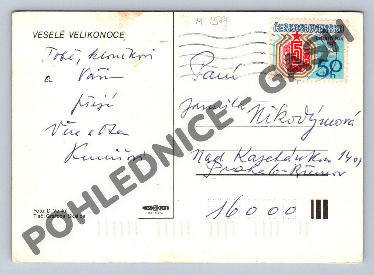 Velikonoční pohlednice ČSR, kraslice, květiny, známka