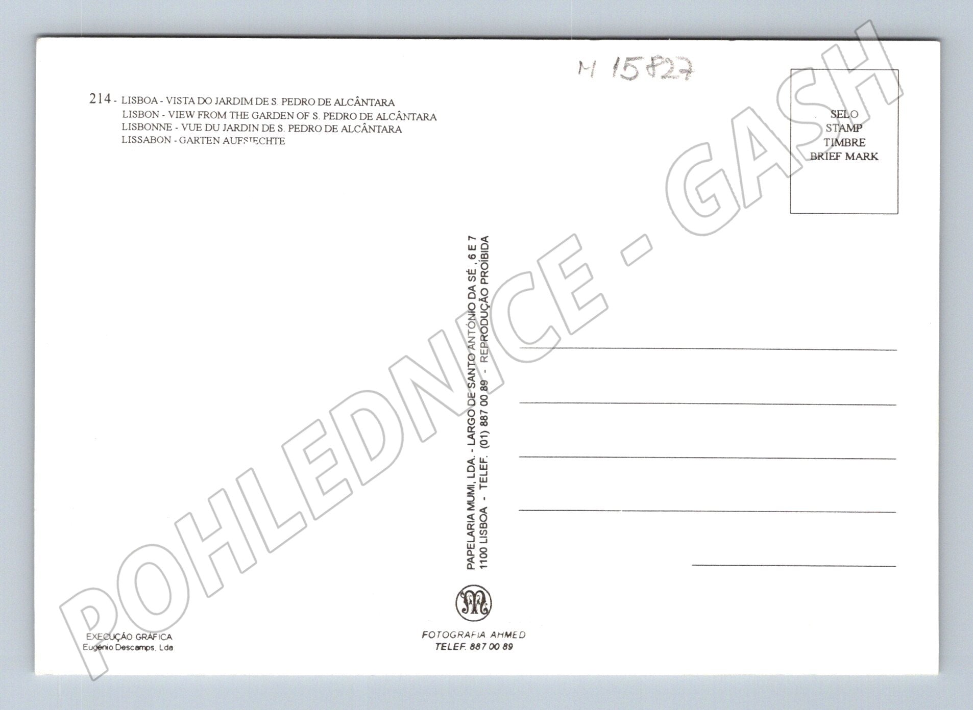 Originální pohlednice z Lisabonu, Portugalsko. Na přední straně je panoramatický pohled na centrum města s dominantou hradu Svatého Jiří (Castelo de São Jorge) a červenými střechami historických budov. Pohled je pořízen z vyhlídky v zahradách S. Pedro de Alcântara (Jardim de S. Pedro de Alcântara). Pohlednice je neprošlá poštou, ve výborném stavu bez viditelného poškození. Na zadní straně je popis místa ve čtyřech jazycích. Skvělý přírůstek do sbírky zahraničních pohlednic nebo jako vzpomínka na návštěvu portugalské metropole.