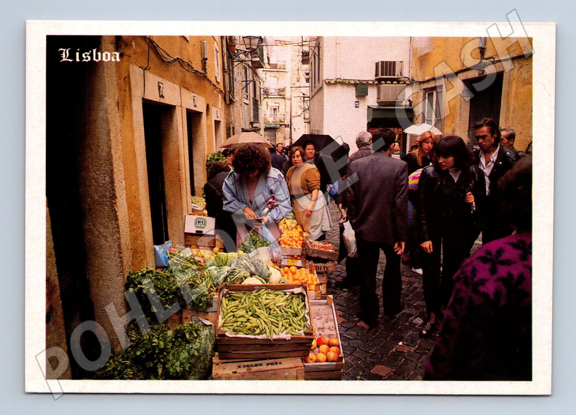 Originální barevná pohlednice z Portugalska, konkrétně z Lisabonu. Na přední straně je zachycena živá ulice s pouličním prodejem ovoce a zeleniny. Místní obyvatelé i turisté nakupují na tradičním tržišti, které je plné čerstvých produktů a nabízí autentickou atmosféru středomořského města. Pohlednice není použitá, zadní strana je čistá s místem pro známku a adresu. Vhodné do sbírky nebo pro milovníky městských motivů a Portugalska.