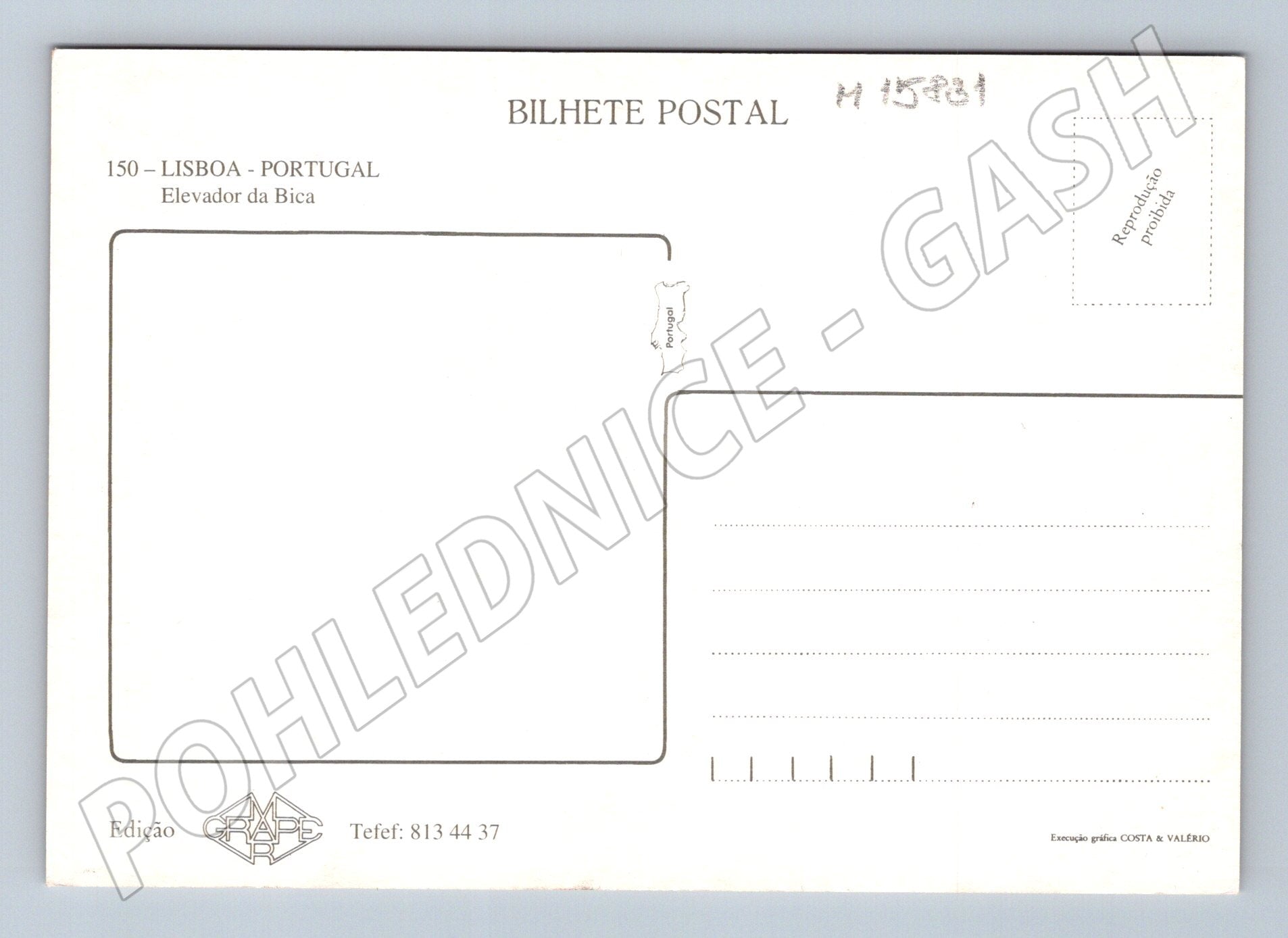 Originální pohlednice z Portugalska, konkrétně z Lisabonu, s motivem známé lanovky Elevador da Bica. Pohlednice zachycuje historickou úzkou ulici s kolejemi lanové dráhy a typickou atmosféru města. V pozadí je patrná část městské zástavby a typické tramvajové/trolejové vedení. Zadní strana je nevyplněná, připravená k odeslání. Výborný stav, vhodné pro sběratele tematických pohlednic železniční dopravy i milovníky Portugalska.