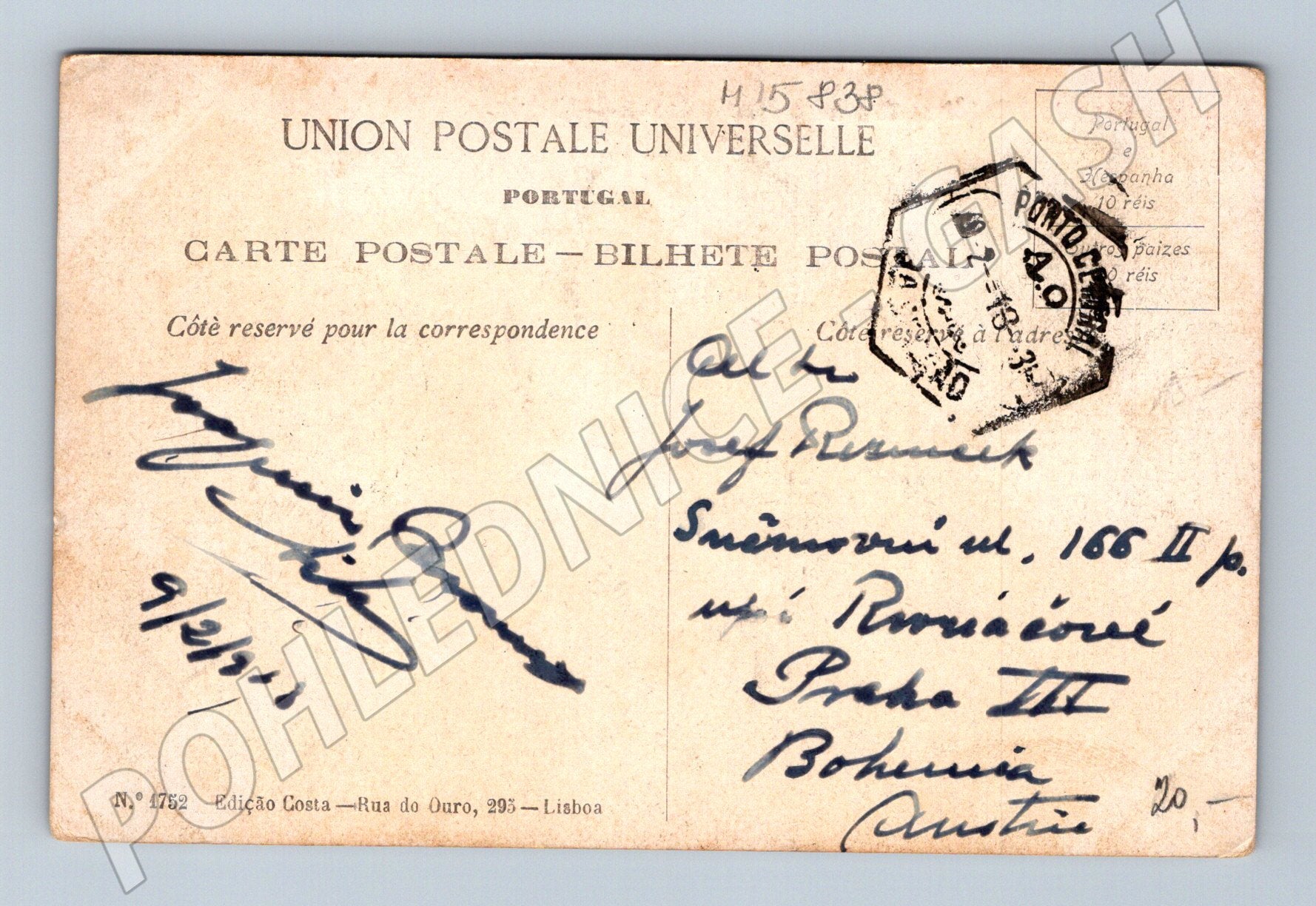 Nabízím originální starou pohlednici zobrazující Lago do Jardim na Praça do Rios, Lisabon, Portugalsko. Na pohlednici je barevný motiv s fontánou, palmovými stromy a budovou v pozadí. Pohlednice je prošlá poštou, opatřená poštovní známkou a razítkem s datem 1910. Na zadní straně najdete ručně psaný text i poštovní razítka, což dokládá její historickou hodnotu. Skvělý sběratelský kousek pro milovníky historie nebo tematických pohlednic z Portugalska.