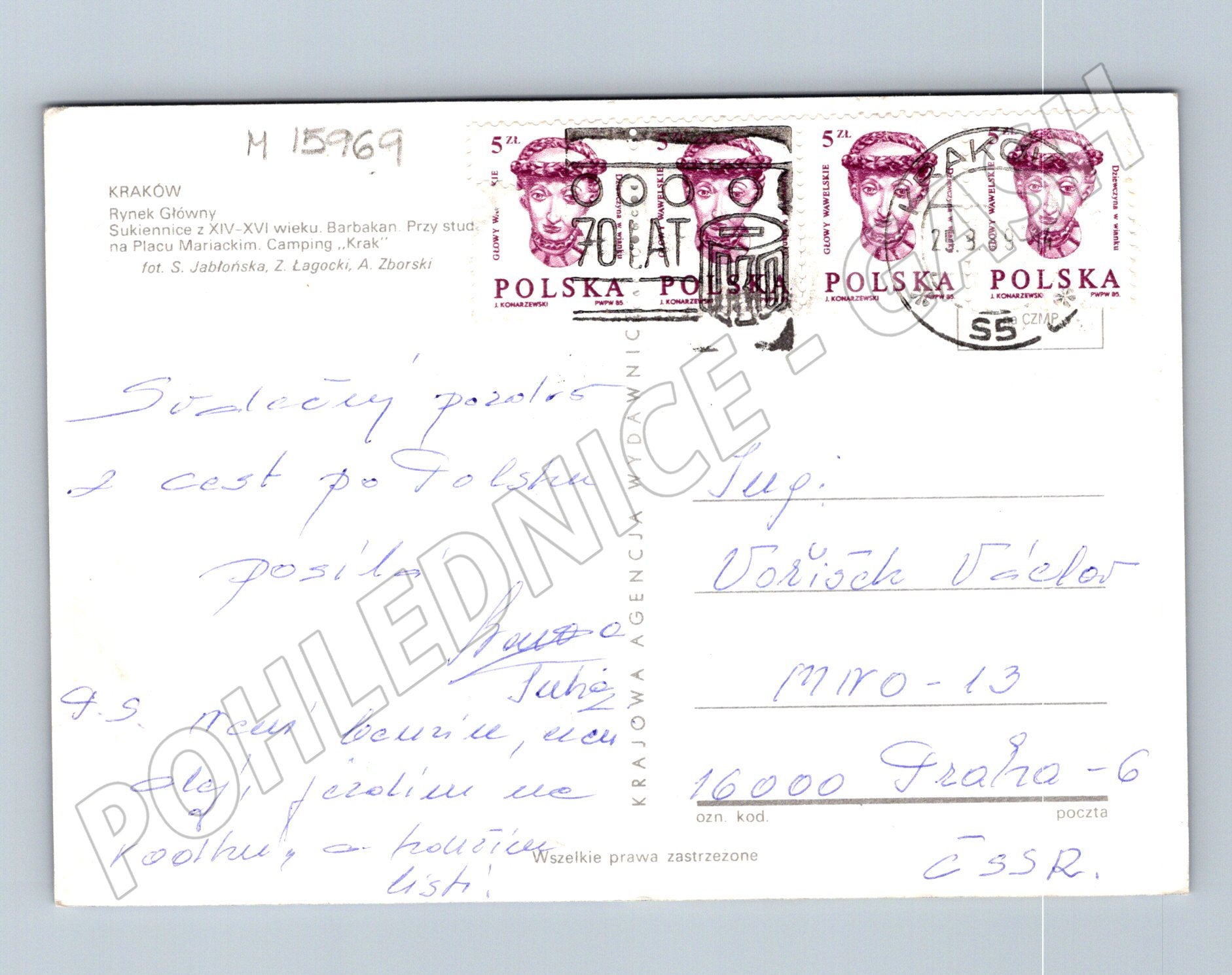 Pohlednice Krakov koláž Polsko 1989 známky (M15969)