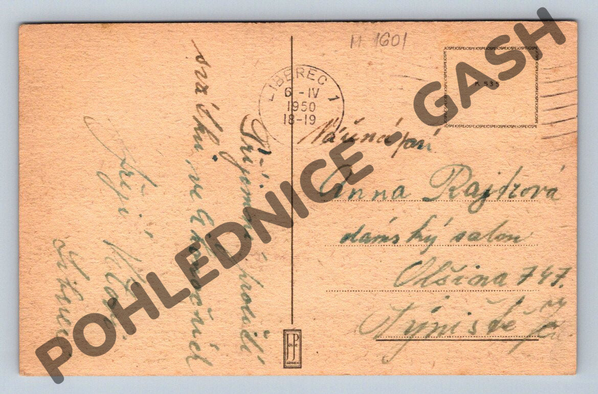 Starobylá velikonoční pohlednice s motivem venkovského domu u rybníka, obklopeného jarní přírodou. Pohlednice je přání k Velikonocům s nápisem Veselé velikonoce na přední straně. Na zadní straně je ručně psaný vzkaz, adresovaná paní Anně Rajzrové. Pohlednice je opatřena poštovní známkou a razítkem z roku 1950. Stav pohlednice odpovídá stáří – mírné opotřebení a zažloutnutí, rohy lehce ohnuté, barvy jsou dobře zachovalé. Jedná se o originální historický kousek vhodný pro sběratele pohlednic nebo milovníky starých velikonočních motivů.