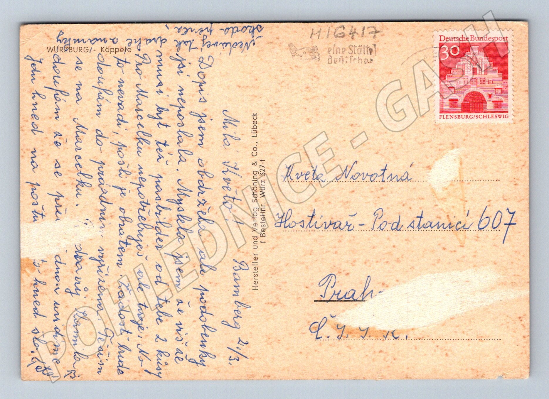 Nabízím originální starou pohlednici s pohledem na město Würzburg v Německu, konkrétně na poutní kostel Kapelle (Käppele), obklopený malebnou krajinou a vilkami. Pohlednice je použita, opatřena německou známkou Deutsche Bundespost a razítkem. Text je psán česky a adresována do Prahy. Pohlednice je ve velmi dobrém stavu s mírnými stopami stáří a drobným opotřebením v rozích. Skvělý sběratelský kousek pro milovníky historických pohlednic a německých měst.