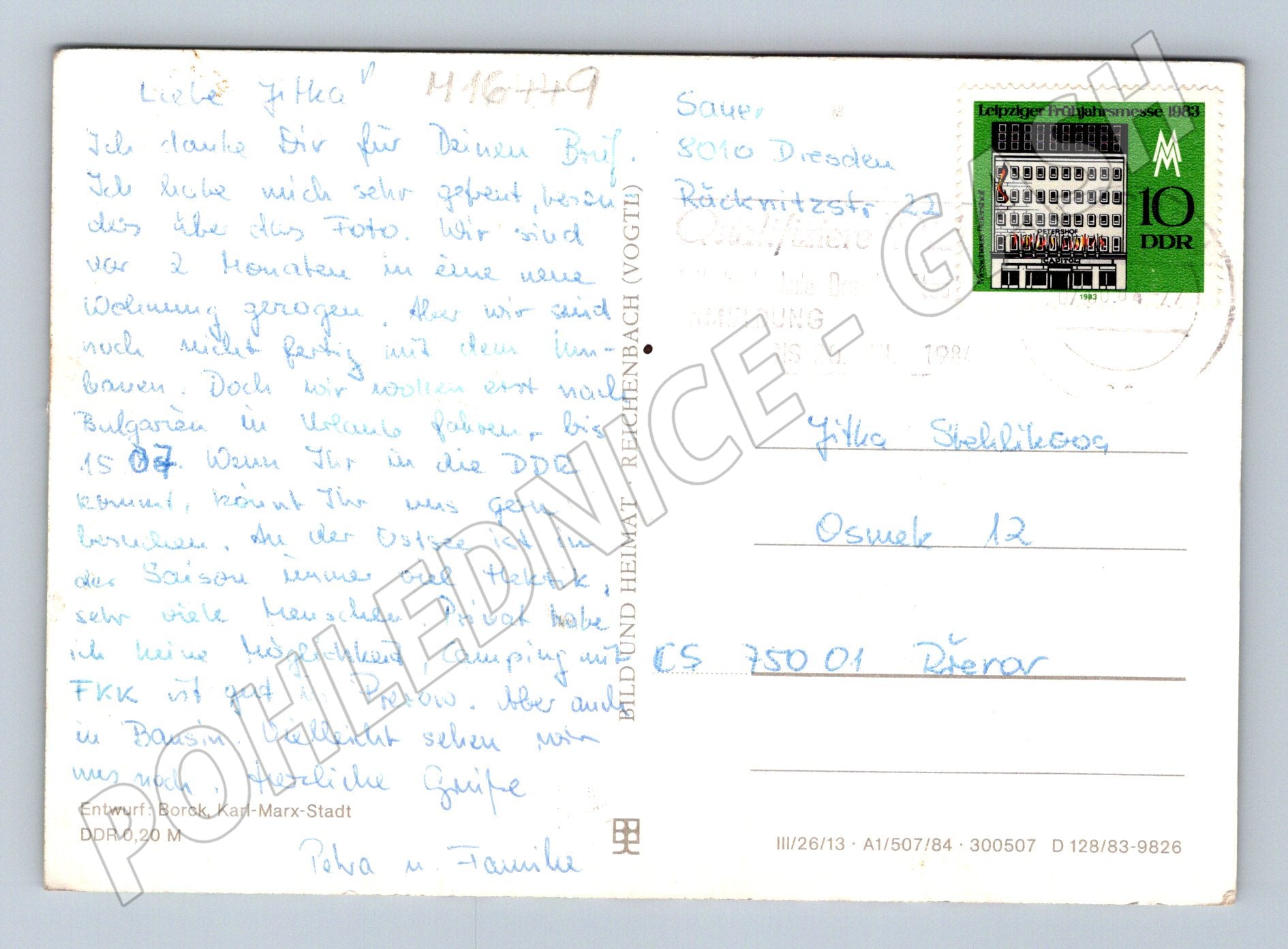 Originální pohlednice z bývalé NDR (DDR) zobrazující stylizovanou mapu centra Drážďan s vyznačením významných památek a budov, jako je Semperova opera, Zwinger či Frauenkirche. Na zadní straně je ručně psaný text a DDR poštovní známka s razítkem z roku 1984. Pohlednice byla zaslaná do Československa. Jedná se o zajímavý sběratelský kus s dobovým projektem i známkou. Použitá, lehce opotřebená, stav viz foto.