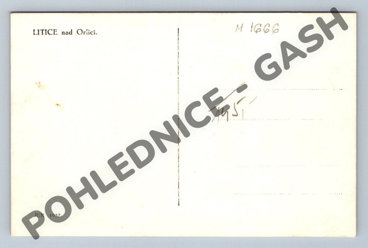 Originální černobílá pohlednice z roku 1937 zachycující pohled na hrad Litice nad Orlicí obklopený kopcovitou krajinou a lesy. Na zadní straně je označení místa LITICE nad Orlicí a rok vydání 1937. Pohlednice je velmi dobře zachovalá, s nepsanou a čistou zadní stranou. Ideální sběratelský kousek pro milovníky historických pohlednic a českých hradů. Rozměr klasický malý formát.