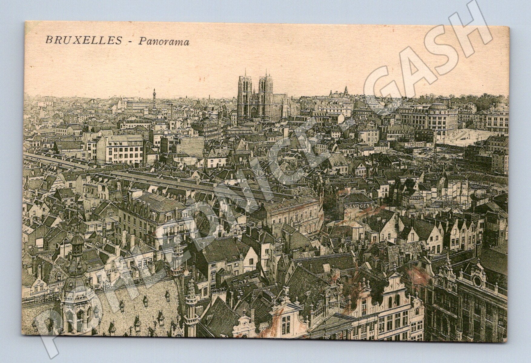 Originální stará pohlednice zobrazující panoramatický výhled na město Brusel (Bruxelles) v Belgii. Na přední straně je detailně vyobrazená historická část města s dominantou katedrály a hustou zástavbou. Pohlednice nese starý tiskový popis BRUXELLES - Panorama , zadní strana je rozdělena typicky pro korespondenci a adresu, bez známky a razítek. Pohlednice nese známky stáří - mírné opotřebení a drobné flíčky, což odpovídá jejímu stáří, jinak dobrý sběratelský stav. Skvělý přírůstek do sbírky evropských historických pohlednic.