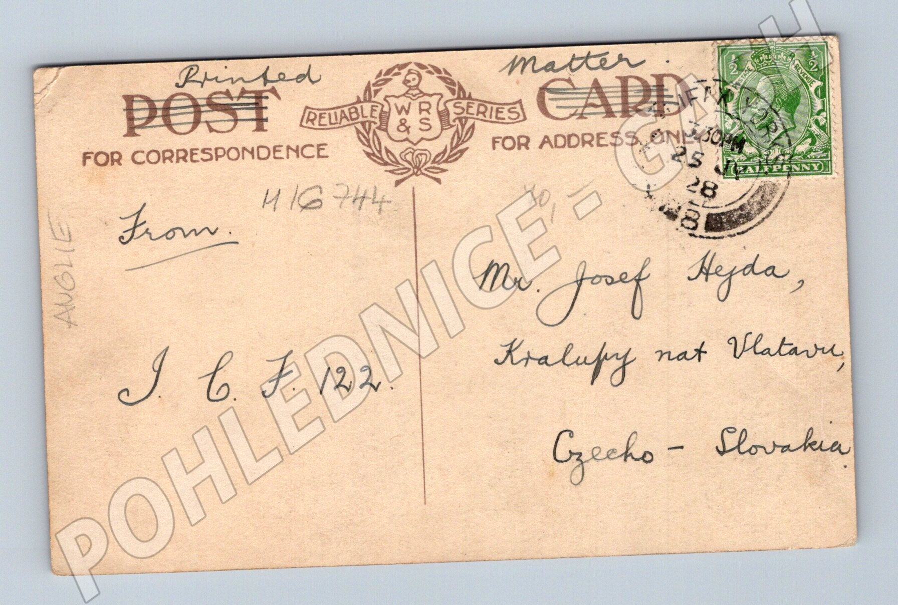 Nabízím originální starou pohlednici s vyobrazením Kirkstall Abbey v Anglii. Pohlednice zachycuje impozantní ruiny známého kláštera s krásnými detaily architektury a okolní přírodou. Na zadní straně je ručně psaný text, adresa do Československa a dobová britská známka s razítkem (rok 1928). Vhodné pro sběratele historických pohlednic, milovníky architektury a historie. Stav pohlednice odpovídá stáří, na okrajích jsou drobné známky opotřebení.