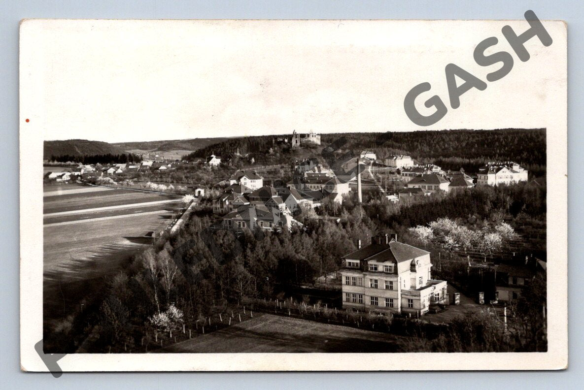 Originální historická černobílá pohlednice zachycující Zemský léčebný ústav Košumberk u Luže. Na pohlednici je vidět panoramatický pohled na ústav a okolní krajinu včetně lesů, sadů a architektury městečka. Jedná se o malý formát, typický pro období do roku 1950. Pohlednice je v dobrém sběratelském stavu, nese drobné známky stáří, zadní strana je neprošlá a čistá, pouze s nápisem a katalogovým číslem. Výborný přírůstek do kolekce historických pohlednic z ČR.