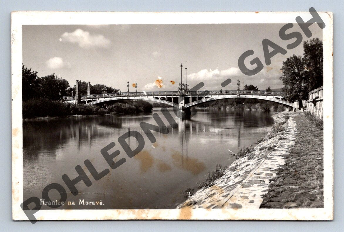 Hranice na Moravě – most, stará pohlednice, ČR před 1950