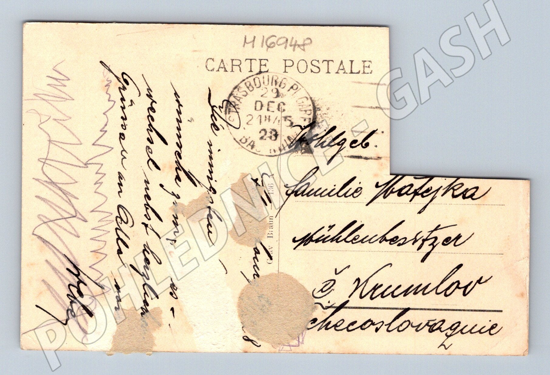 Staré sběratelské pohlednice s motivem Strasbourg - Bain aux Plantes . Na pohlednici je zachycena historická ulice ve Štrasburku s tradičními hrázděnými domy a dobovou atmosférou. Pohlednice je použita, ručně popsána, opatřena známkou a poštovním razítkem z roku 1941 a adresována do tehdejšího Československa. Výborný stav s patrnou patinou a výraznými stopami stáří a odeslání (opotřebení, místy skvrny a ohyby). Skvělý sběratelský kousek pro milovníky Francie, historických pohlednic či poštovní historie.