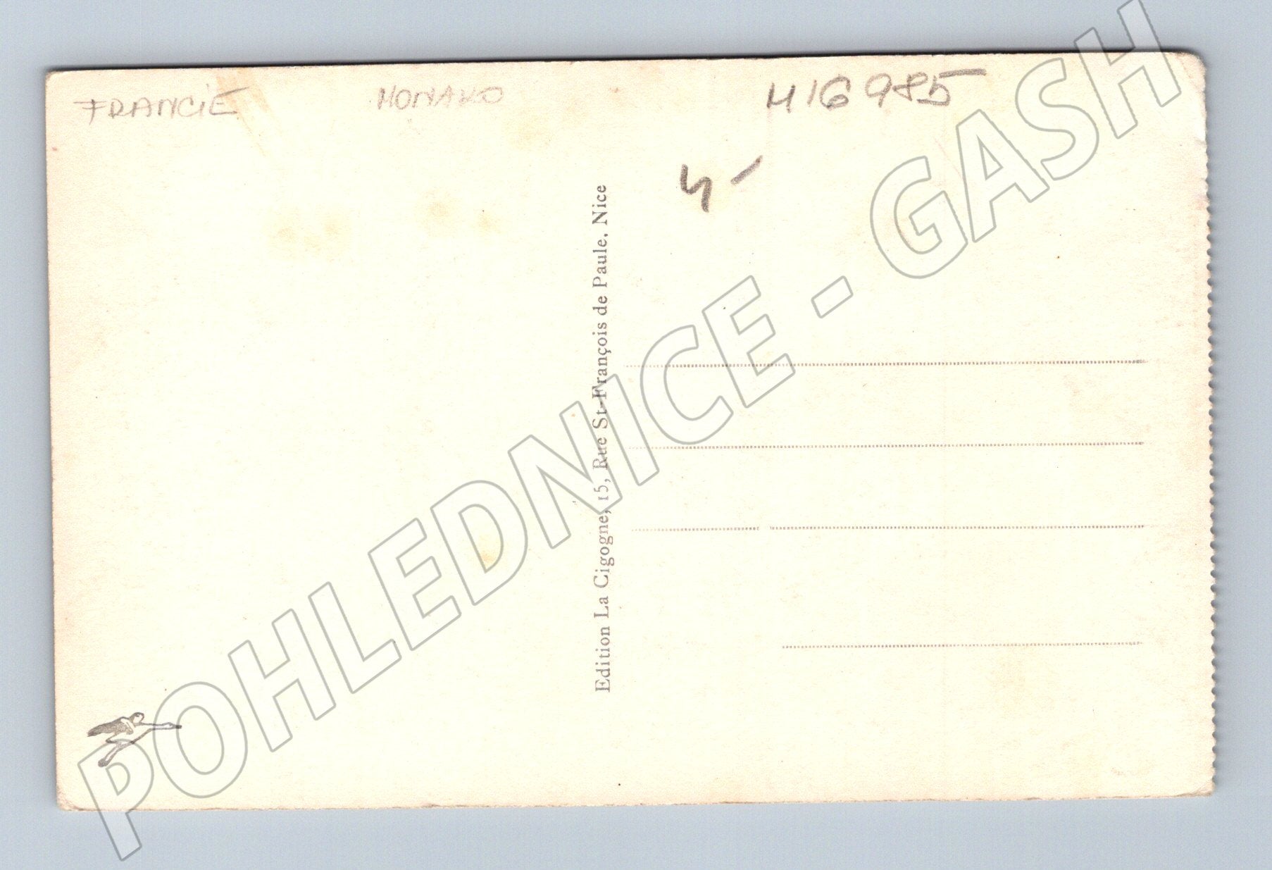 Originální černobílá pohlednice s leteckým pohledem na Monako a jeho okolí. Na přední straně je panoramatický záběr na útesy, městské stavby a mořské pobřeží Monaka. Pohlednice nese označení Principauté de Monaco – Vue Générale . Na zadní straně je uveden vydavatel Édition La Cigogne, Nice . Stará pohlednice vhodná pro sběratele či milovníky jižní Francie a Monaka. Pohlednice je v pěkném stavu, s nevyplněnou zadní stranou. Skvělý historický doplněk do sbírky pohlednic z Francie a Monaka.