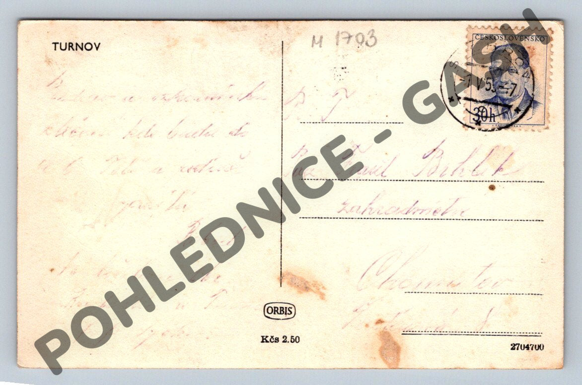 Stará pohlednice Turnov, Český ráj, malý formát, razítkovaná