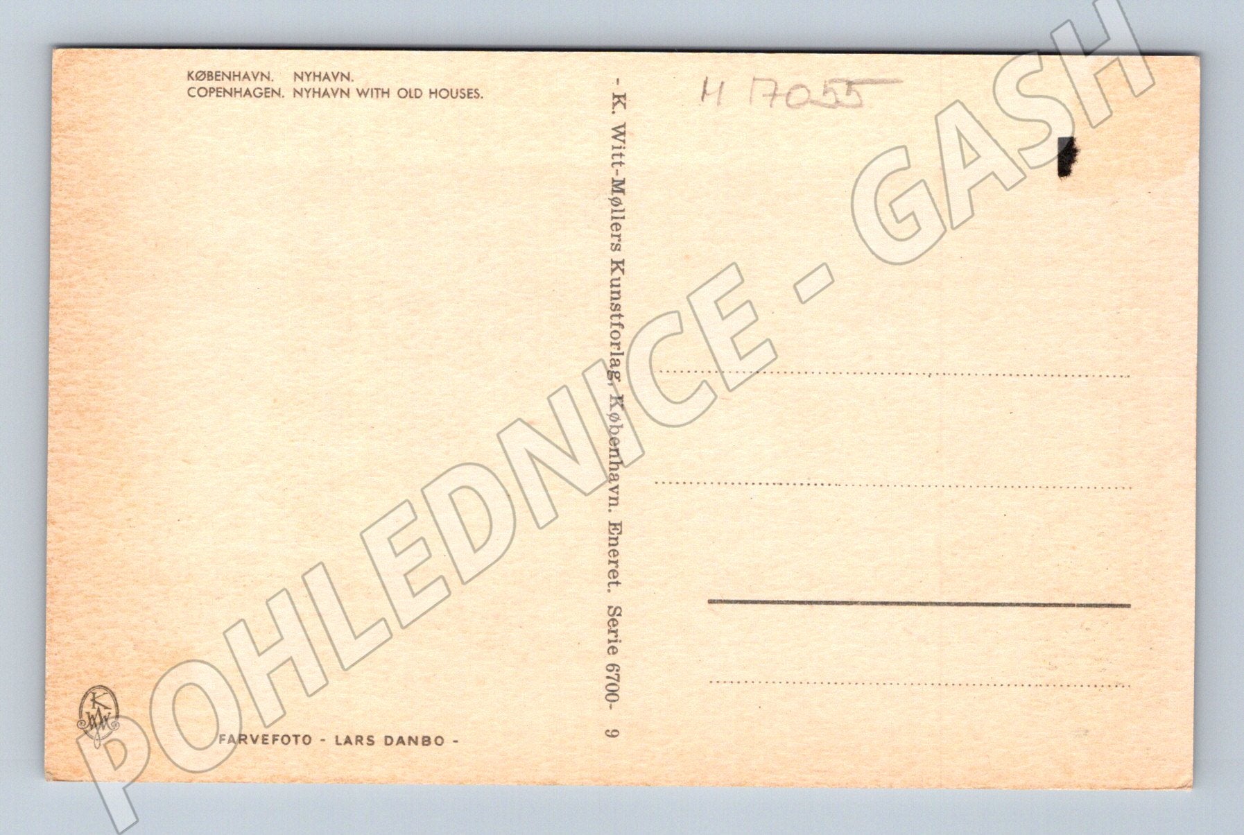 Originální barevná pohlednice zobrazující ikonickou čtvrť Nyhavn v Kodani v Dánsku. Na fotografii jsou zachyceny typické barevné fasády historických domů lemující nábřeží a kanál, po kterém projíždí loďka. Pohlednice má klasický, čistý rub s popisem v několika jazycích (Kopenhagen, Nyhavn / Copenhagen, Nyhavn with old houses) a není popsána. Jedná se o krásnou sběratelskou pohlednici z období druhé poloviny 20. století ve velmi pěkném stavu vhodnou do sbírky či jako dekorace. Vydáno vydavatelstvím A. Wit. Meyer s Kunstforlag, foto Lars Danbo. Formát standardní.