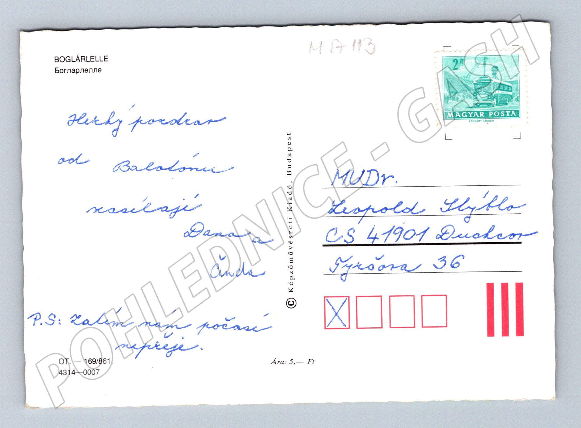 Pohlednice z města Boglárlelle na břehu Balatonu, Maďarsko. Na pohlednici jsou čtyři barevné snímky zachycující krásy města – zahrady, sochy, jachty na Balatonu a hotelový komplex. Na zadní straně je rukou psaný pozdrav v češtině a originální maďarská poštovní známka. Stav velmi dobrý, mírné opotřebení odpovídající stáří. Ideální pro sběratele pohlednic s tematikou Maďarska a Balatonu.