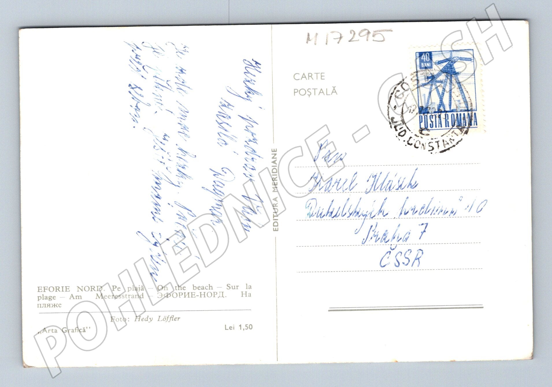 Nabízím originální pohlednici Eforie Nord v Rumunsku z období socialismu. Na přední straně je barevná fotografie rušné pláže u Černého moře, plné lidí a slunečníků, s vlnolamem vybíhajícím do moře. Na zadní straně je pohlednice opatřena rumunskou známkou, razítkem z města Constanța a ručně psaným vzkazem adresovaným do tehdejšího Československa. Pohlednice je v dobrém stavu, přináší autentickou atmosféru letní dovolené v Rumunsku sedmdesátých let. Vhodné pro sběratele zahraničních pohlednic, cestovatelských upomínek či dobových artefaktů.