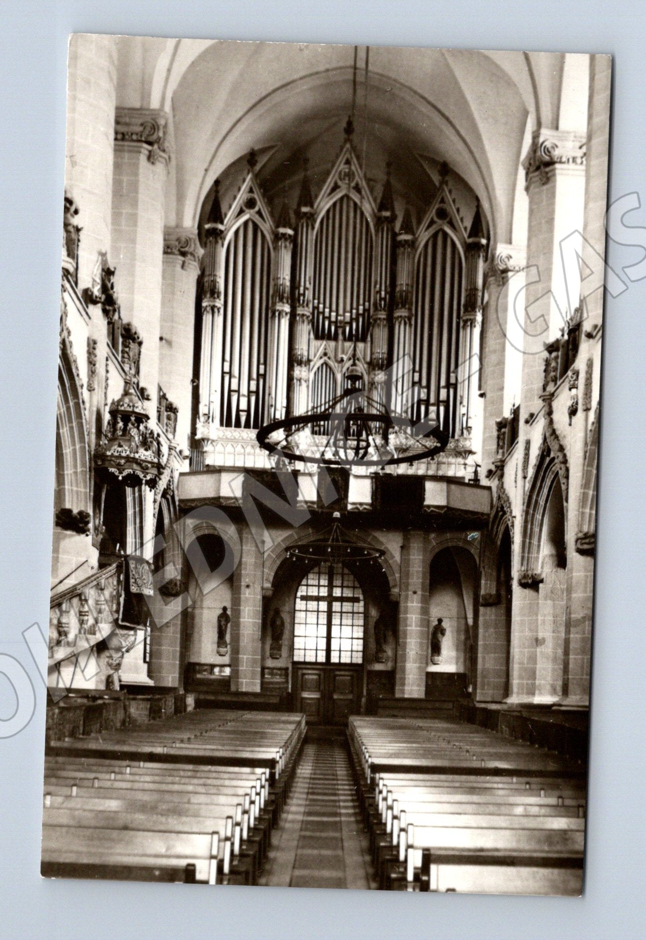 Brašov – Černý kostel, varhany, interiér – černobílá pohlednice Rumunsko
