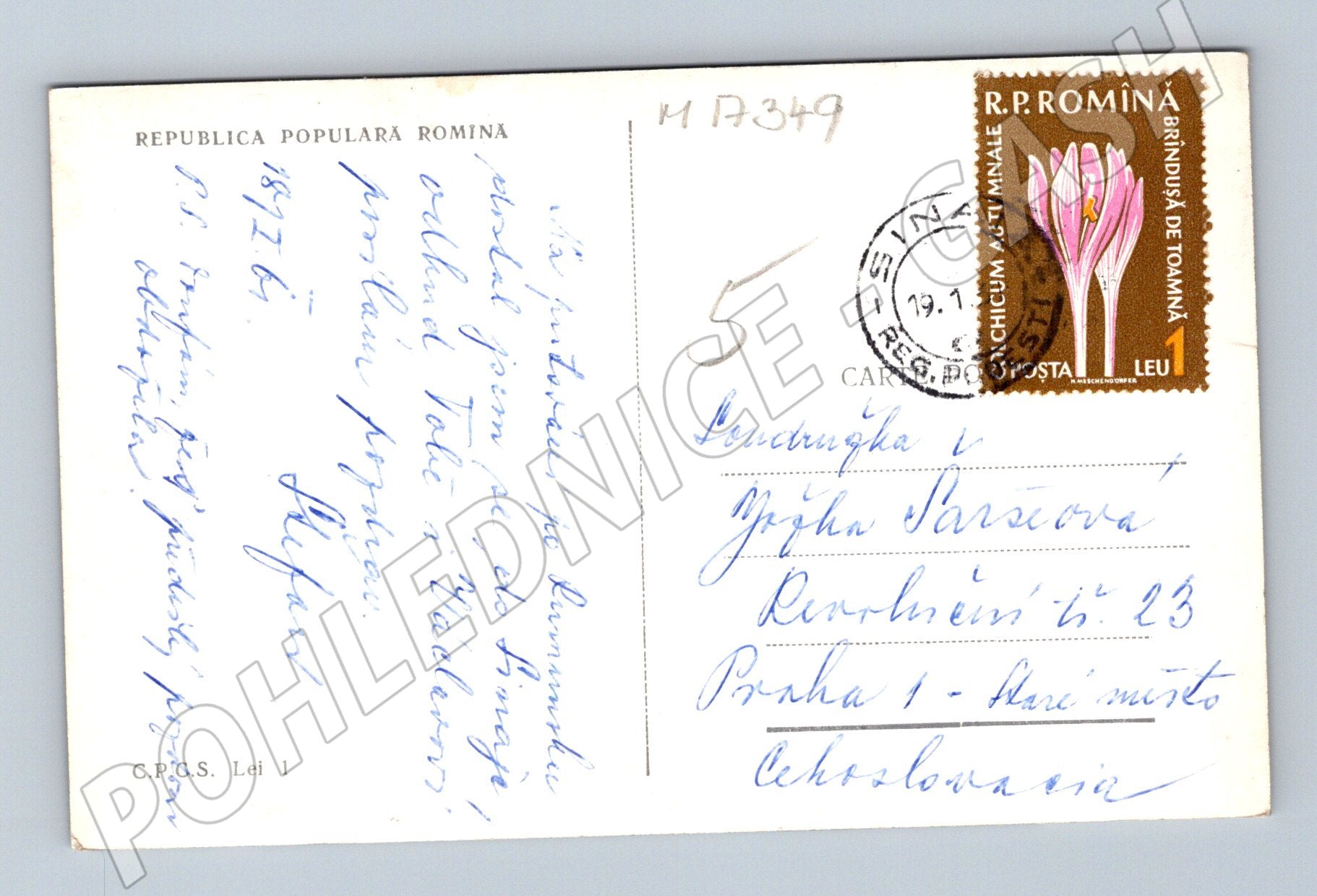 Nabízím originální pohlednici z Rumunska ze 70. let. Na přední straně je černobílá fotografie slavného Pelešského muzea v letovisku Sinaia (Sinaia – Muzeu Peleș), které se nachází v Karpatech. Zadní strana je prošlá poštou, s rumunskou známkou a jasným razítkem SINAIA z roku 1971. Pohlednice je adresována do Prahy, s originálním ručně psaným vzkazem v češtině a rumunštině. Celkově dobrý stav, drobné známky stáří a opotřebení odpovídající stáří. Skvělý sběratelský kousek pro milovníky památek či historických pohlednic z jiných zemí.