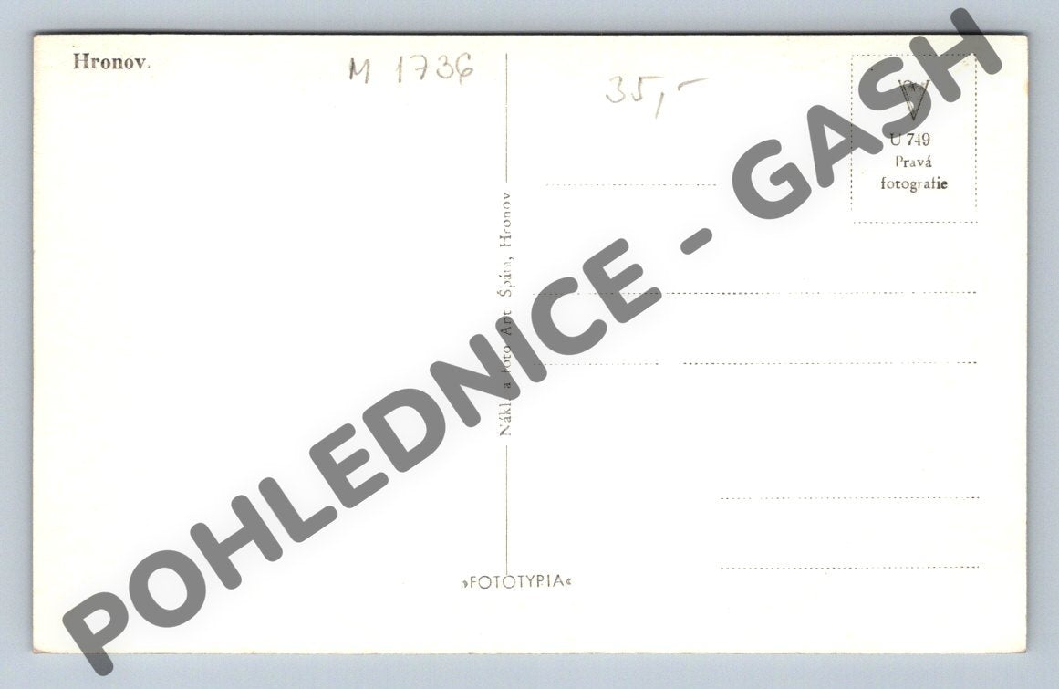 Originální černobílá pohlednice zachycující panoramatický pohled na město Hronov s výraznou tovární budovou a komínem v popředí. Pohlednice nabízí pohled z vyvýšeného místa, s cestou lemovanou stromy a obilným polem v popředí. V pozadí lze vidět zástavbu města, okolní pole a kopcovitou krajinu. Na zadní straně je vytištěno Hronov , vydavatel Ant. Špán a označení Pravá fotografie . Pohlednice je ve velmi dobrém stavu, vhodná do sbírky i k vystavení. Rozměr malý formát, vydáno před rokem 1950.