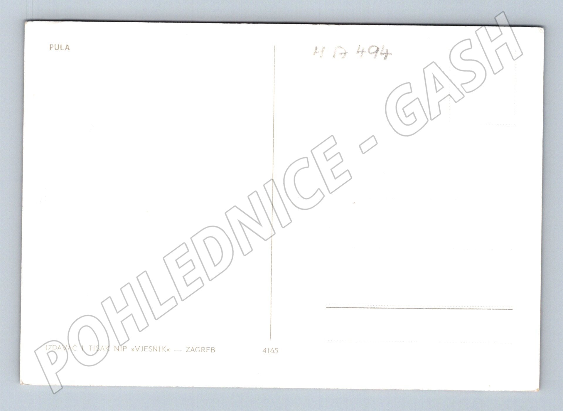 Pohlednice s leteckým pohledem na antický amfiteátr v chorvatském městě Pula. Amfiteátr, známý také jako Pulská arena, je jednou z nejlépe dochovaných římských arén na světě a symbolizuje bohatou historii tohoto přímořského města. Na pohlednici jsou dobře viditelné okolní ulice, charakteristické středomořské domy s červenými střechami a přímořská část města s přístavem. Zadní strana je nepopsaná, pouze s označením PULA a vydavatelem NIP VJESNIK ZAGREB. Skvělý sběratelský kousek pro milovníky historických staveb či Chorvatska.