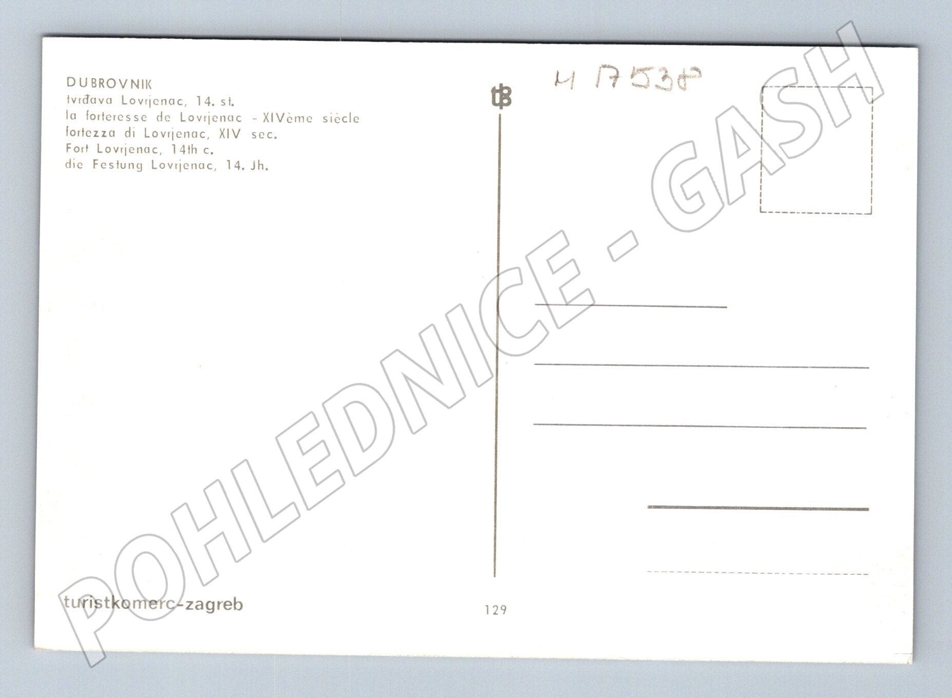 Nabízím originální pohlednici s motivem tvrze Lovrijenac v Dubrovníku, která pochází ze 14. století. Lovrijenac je významná historická pevnost situovaná na skalnatém útesu nad mořem, která chránila vstup do města Dubrovník. Na pohlednici je zachycena krásná scenérie s pohledem na mohutné zdi pevnosti a okolní přírodu. Na zadní straně jsou popisky v několika jazycích. Pohlednice je neprošlá poštou, ve velmi dobrém stavu. Ideální doplněk do sbírky pohlednic s motivem hradů a zámků nebo památek Chorvatska.