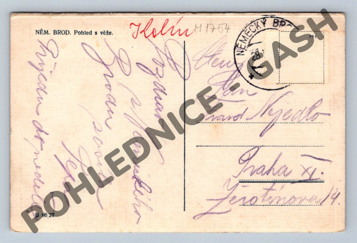 Německý Brod – historická pohlednice, pohled z věže, malý formát