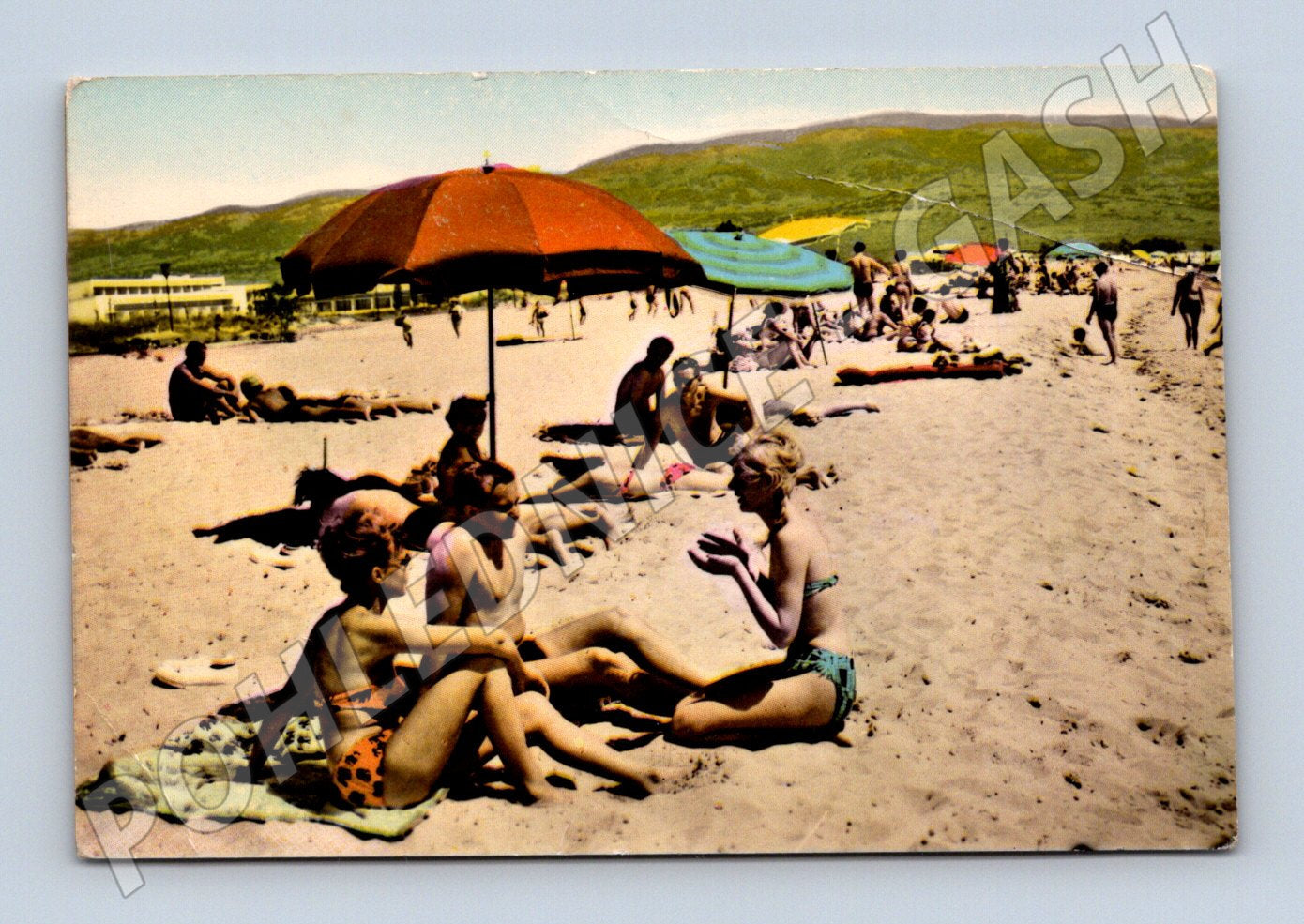 Originální pohlednice zobrazující letní plážovou scenérii v Soči (Rusko, bývalý SSSR). Pohlednice zachycuje odpočívající lidi na písečné pláži s typickými slunečníky a letní atmosférou. Na zadní straně pohlednice je vícejazyčný popis Pohled na pláž (bulharsky, francouzsky, německy) a ručně dopsáno Rusko - Sochi . Pohlednice je vydaná Bulgarika Fotopos v Bulharsku. Přibližné stáří odpovídá období SSSR. Ideální pro sběratele sovětských pohlednic nebo zájemce o retro letní motivy z Ruska. Stav viz foto, běžné známky stáří a opotřebení.