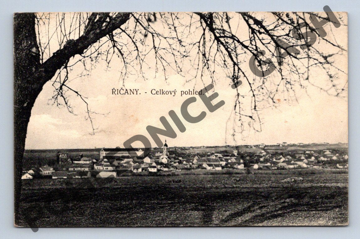 Říčany – celkový pohled, stará pohlednice, malý formát