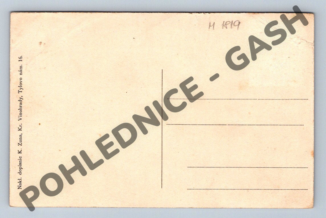 Starší pohlednice města Říčany s názvem ŘÍČANY – Celkový pohled ukazuje panoramatický pohled na město v dobovém provedení. Na přední straně je černobílá fotografie s námětem města a nápisem, v horní části je zachycena silueta větví stromu. Zadní strana je čistá, nepopsaná, pouze s vyznačeným místem pro známku a adresu. Vydavatel: K. Zuna, Kr. Vinohrady, Tylovo nám. 16. Jedná se o malý formát, pohlednice je ve velmi dobrém sběratelském stavu s drobnějším opotřebením odpovídajícím stáří. Ideální do sbírky historických pohlednic z ČR.