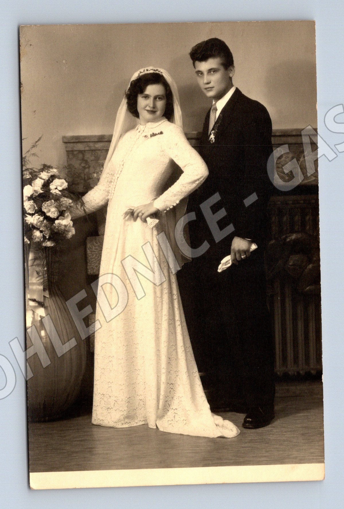 Historická svatební pohlednice – ateliér Ševčík Prostějov
