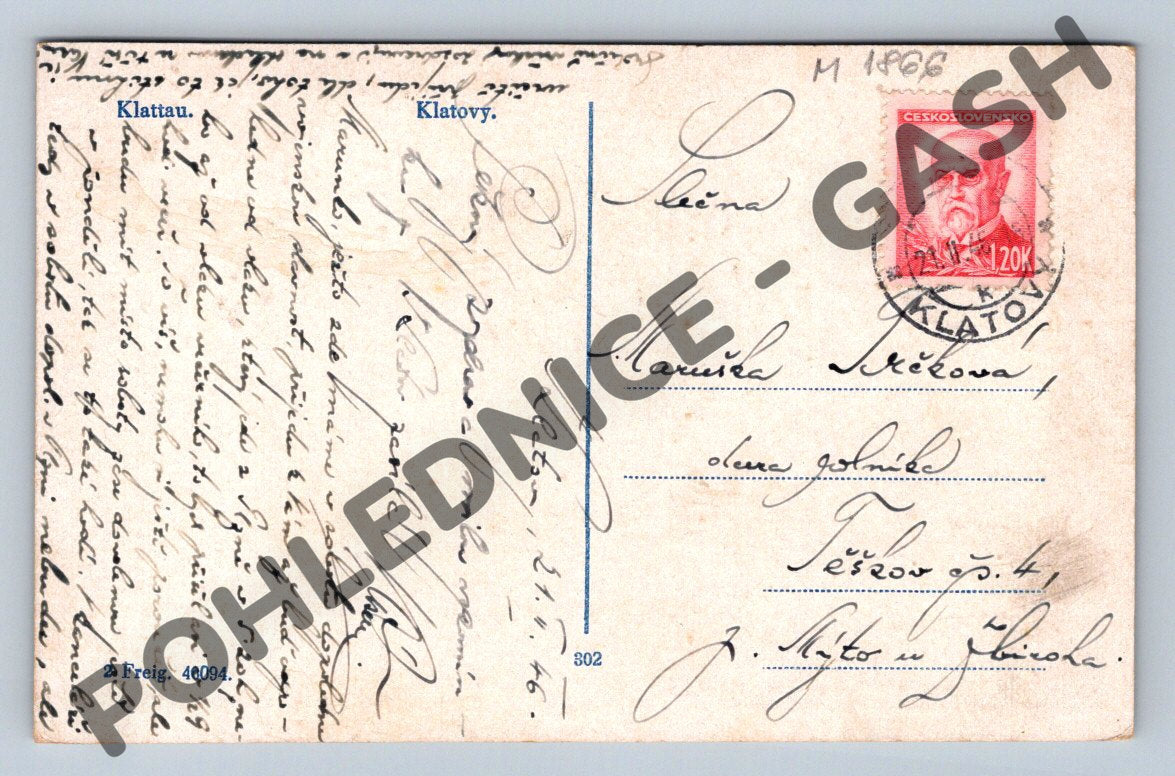 Pohlednice Klatovy panorama pošta květiny (M1866)