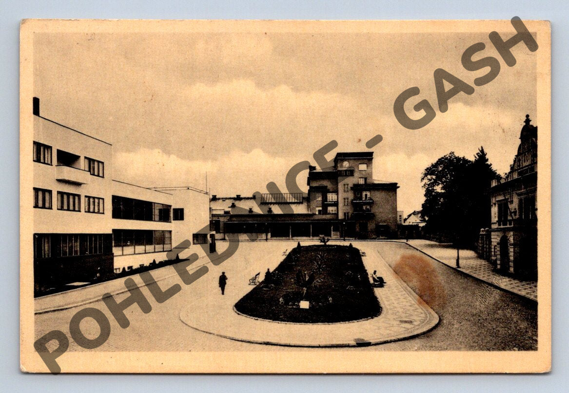 Originální stará pohlednice z období první poloviny 20. století (dle razítka a známky), zobrazující modernistickou architekturu a veřejný prostor v Rokycanech. Pohlednice nese známku Československo a byla odeslána, což zvyšuje její sběratelskou hodnotu. Na zadní straně je čitelný rukopisný vzkaz a adresa. Vhodné pro sběratele historických pohlednic a zájemce o architekturu a historii českých měst. Stav viz foto – mírné opotřebení, stáří odpovídající nálezový stav.