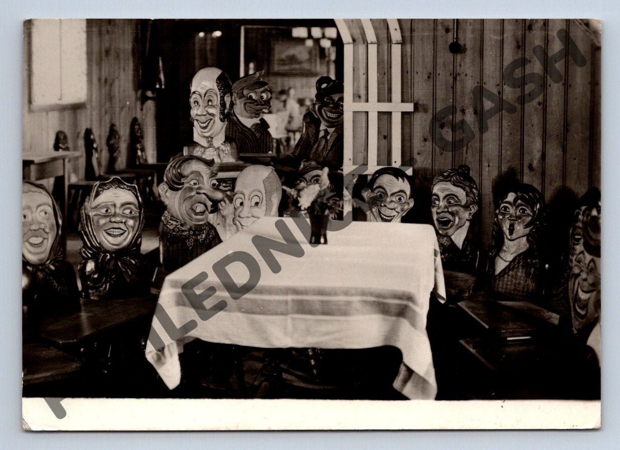 Originální černobílá pohlednice s motivem Jeseníky – Rejvíz, Noskova chata, z období před rokem 1950. Na fotografii je zachycena unikátní atmosféra vnitřku horské chaty, kde jsou kolem stolu rozestavěny slavné rezavé hlavy – dřevěné židle s vyřezávanými a malovanými opěradly ve tvaru grimasovitých tváří, typických pro tuto lokalitu. Zadní strana obsahuje ručně psaný vzkaz, adresu v Praze a dobovou známku z Československa orazítkovanou v roce 1951. Velmi zajímavý sběratelský kousek dokumentující historii a atmosféru Jeseníků. Stav odpovídá stáří, viz foto.