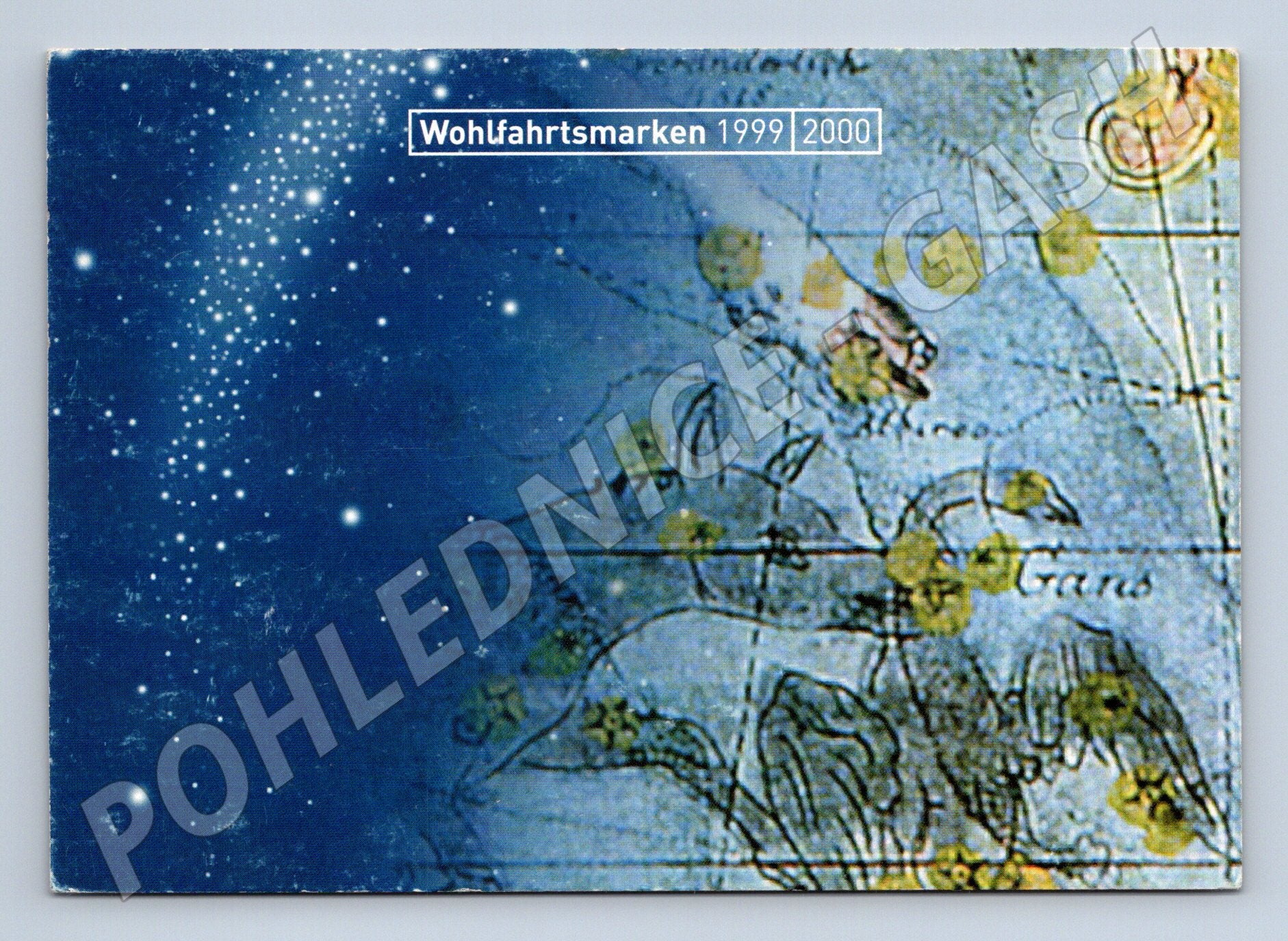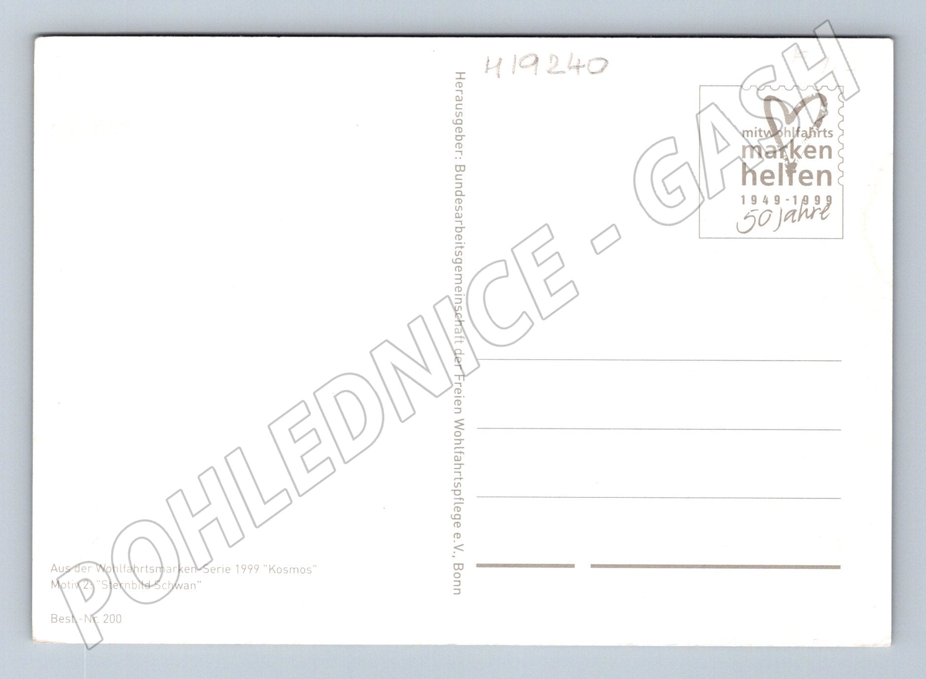 Německá pohlednice Wohlfahrtsmarken 1999/2000 – souhvězdí labutě (Kosmos)