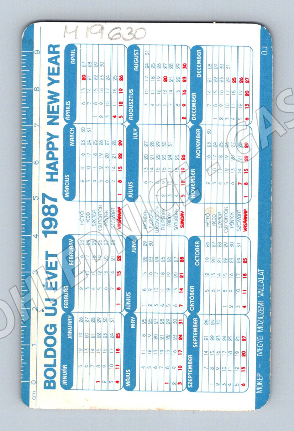 Nabízím originální pohlednici s portrétem známé herečky Ursuly Andress. Pohlednice pochází z roku 1987 – na zadní straně je kalendář na tento rok s nápisem Boldog új évet / Happy New Year 1987 . Text je v maďarštině a angličtině. Pohlednice má rozměry odpovídající běžnému formátu, celkově je zachovalá, místy drobné otlačení či opotřebení na hranách. Jedná se o sběratelsky zajímavý kousek pro milovníky filmových osobností a filmové historie. Ideální přírůstek do sbírky pohlednic s herci a herečkami.