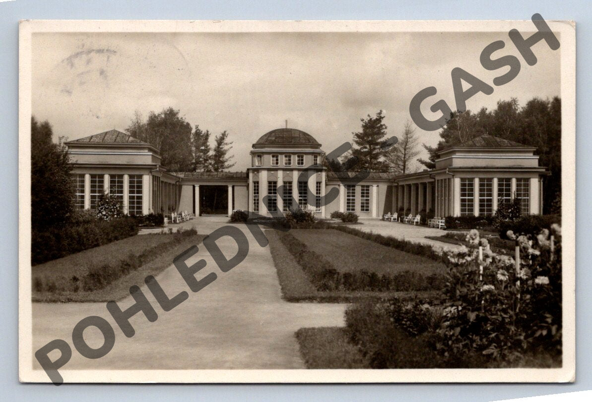 Originální historická pohlednice z Františkových Lázní (Natalie-Quelle, Pramen Natalie), datovaná 17. 6. 1936. Na přední straně se nachází černobílý snímek lázeňské budovy v upraveném parku. Zadní strana obsahuje ručně psaný vzkaz a je orazítkovaná poštovní známkou z období první republiky (Československo), odeslaná do Modřan u Prahy. Skvělý dobový dokument, vhodný pro sběratele pohlednic, zájemce o historii českých lázní nebo milovníky prvorepublikové korespondence. Stav viz foto, jedná se o menší formát do roku 1950.