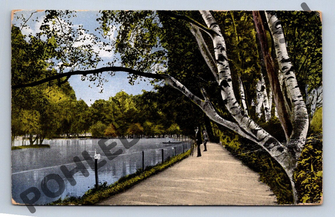 Originální historická pohlednice Franzensbad. Kleiner Stadtteich zachycující malebnou scenérii malého městského rybníka ve Františkových Lázních. Pohlednice zobrazuje upravenou cestu lemovanou vzrostlými břízami a klidnou vodní hladinu s odrazem stromů. Atmosféru dotváří postavy procházejících se lidí v dobovém oblečení. Na zadní straně je předtištěno místo pro adresu, popis a vydavatel E. A. Götz (G. Windisch). Pohlednice pochází z období první poloviny 20. století. Ideální sběratelský kousek v zachovalém stavu s minimálními stopami stáří.