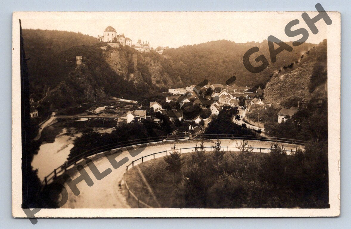 Nabízím starou pohlednici s černobílým motivem českého hradu na vyvýšenině nad městem s řekou a zatáčkou silnice v popředí. Pohlednice zachycuje malebnou krajinu s historickou architekturou, kolem hradu se rozprostírá les a pod ním leží malebná obec. Zadní strana pohlednice je rozdělena pro adresu a zprávu, vlevo je označení fotografa, pan J. Ševčík z Višňové. Pohlednice je ve velmi pěkném sběratelském stavu a vhodná pro milovníky památek, historie a české krajiny. Vhodné pro sběratele starých pohlednic, zájemce o historii či milovníky českých hradů a zámků.