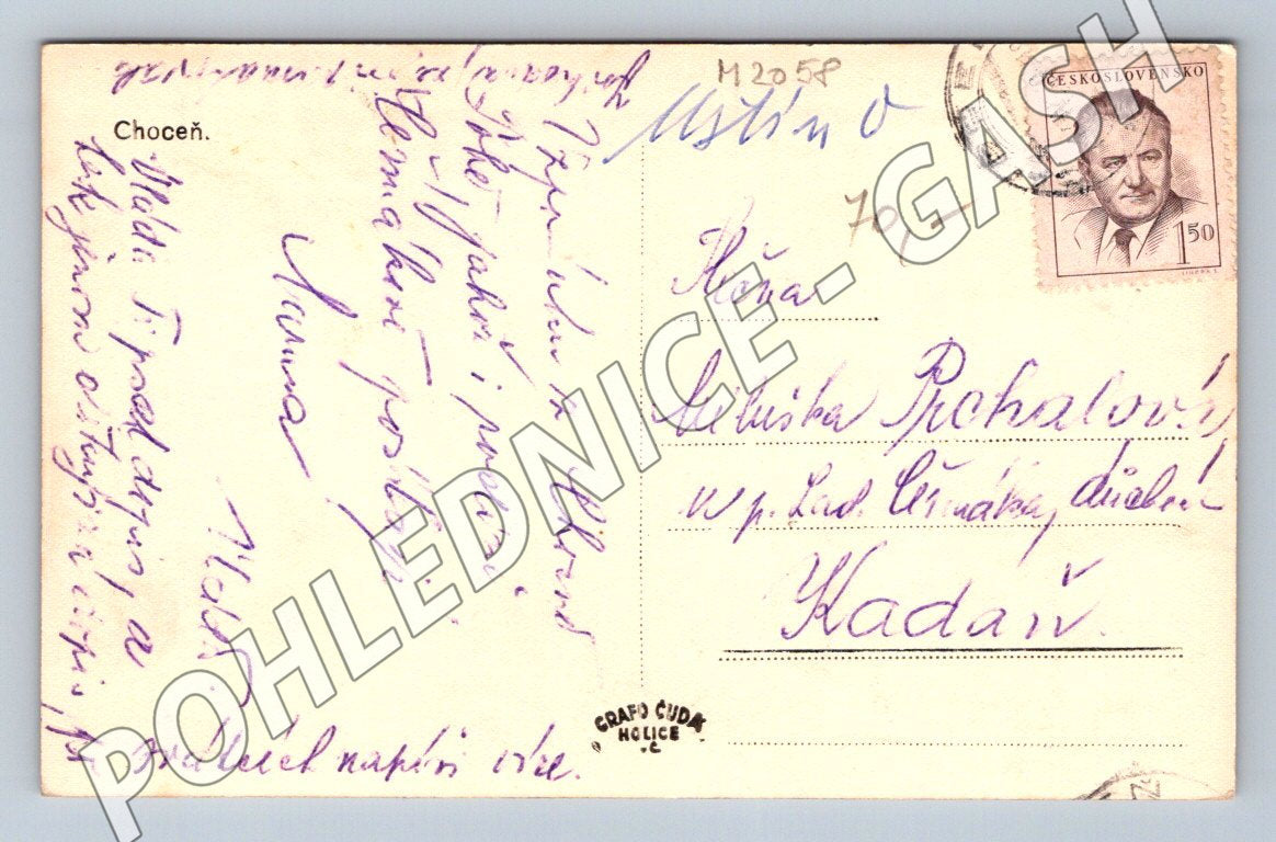 Originální stará pohlednice s pohledem na město Choceň. Na přední straně je černobílá fotografie panoramatu města z vyvýšeného místa, s dominantním stromem v popředí. Zadní strana je popsaná, opatřená známkou a poštovním razítkem. Pohlednice je zajímavá pro sběratele historických pohledů i zájemce o regionální historii. Stav odpovídá stáří, viz foto. Vhodné do sbírky nebo jako dárek.