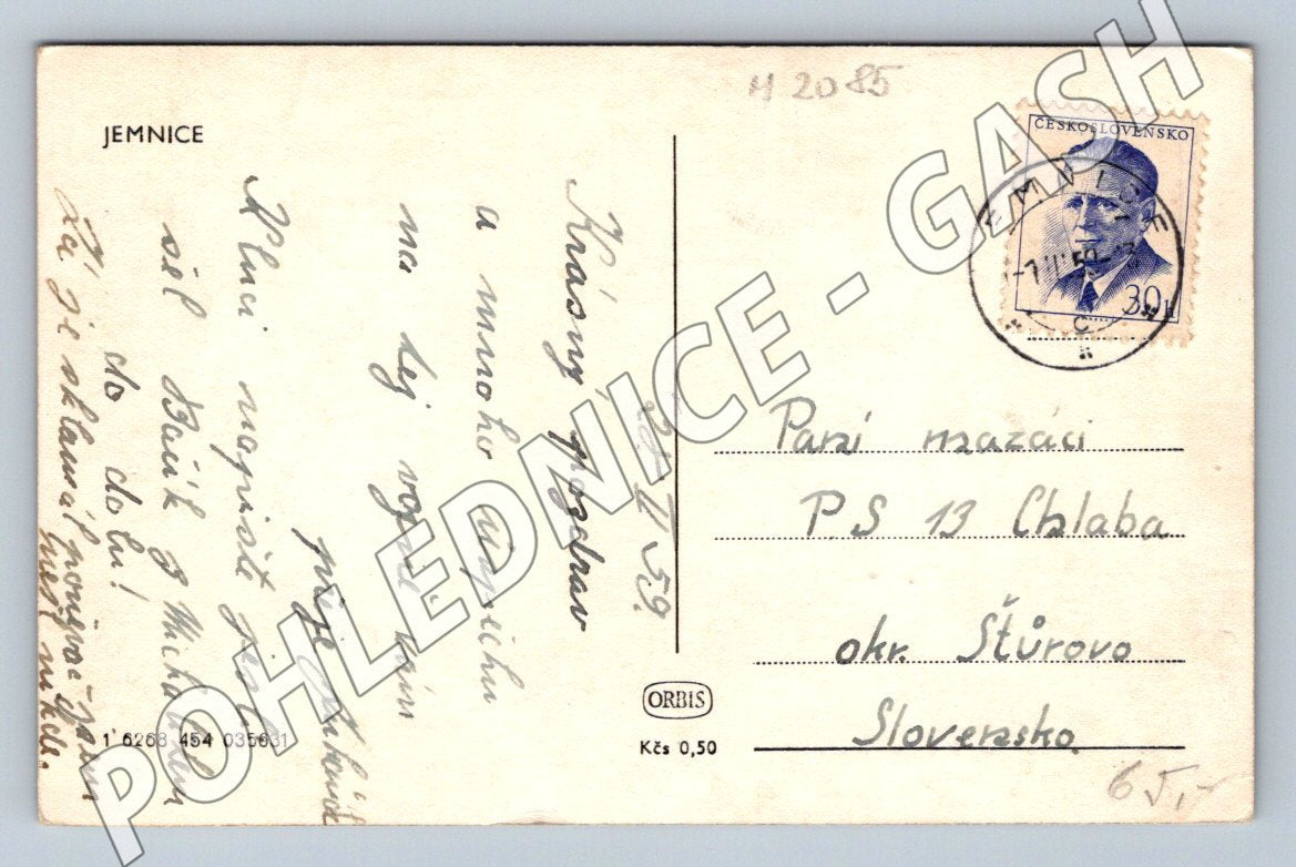 Nabízím originální historickou pohlednici města Jemnice. Na přední straně je zachyceno malebné náměstí s kostelem a řadou historických domů. Celkový pohled na architekturu vypovídá o kouzlu menších městeček v Čechách před polovinou 20. století. Pohlednice je popsaná a prošla poštou, na zadní straně je originální známka s razítkem, datovaná ručně psaným textem. Pohlednice je vhodná pro sběratele historických pohlednic, zájemce o regionální historii nebo sběratele starých českých měst.