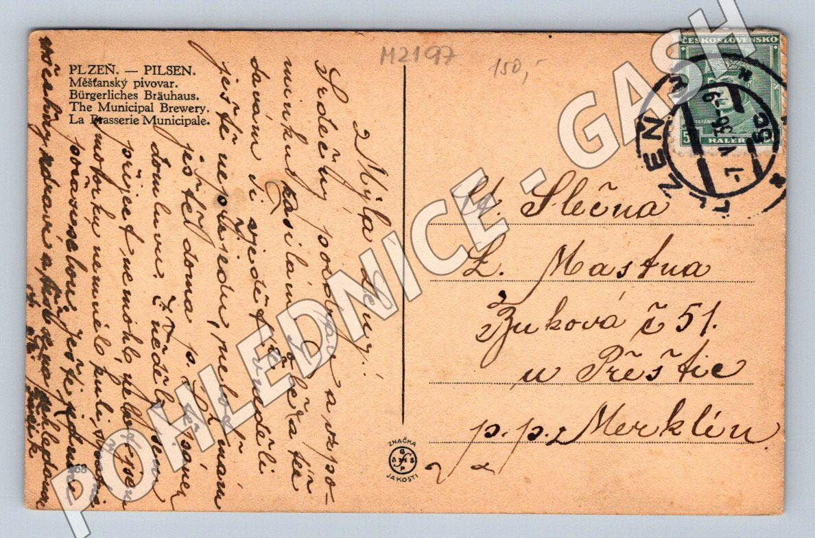 Pohlednice Plzeň Městský pivovar PP (M2197)