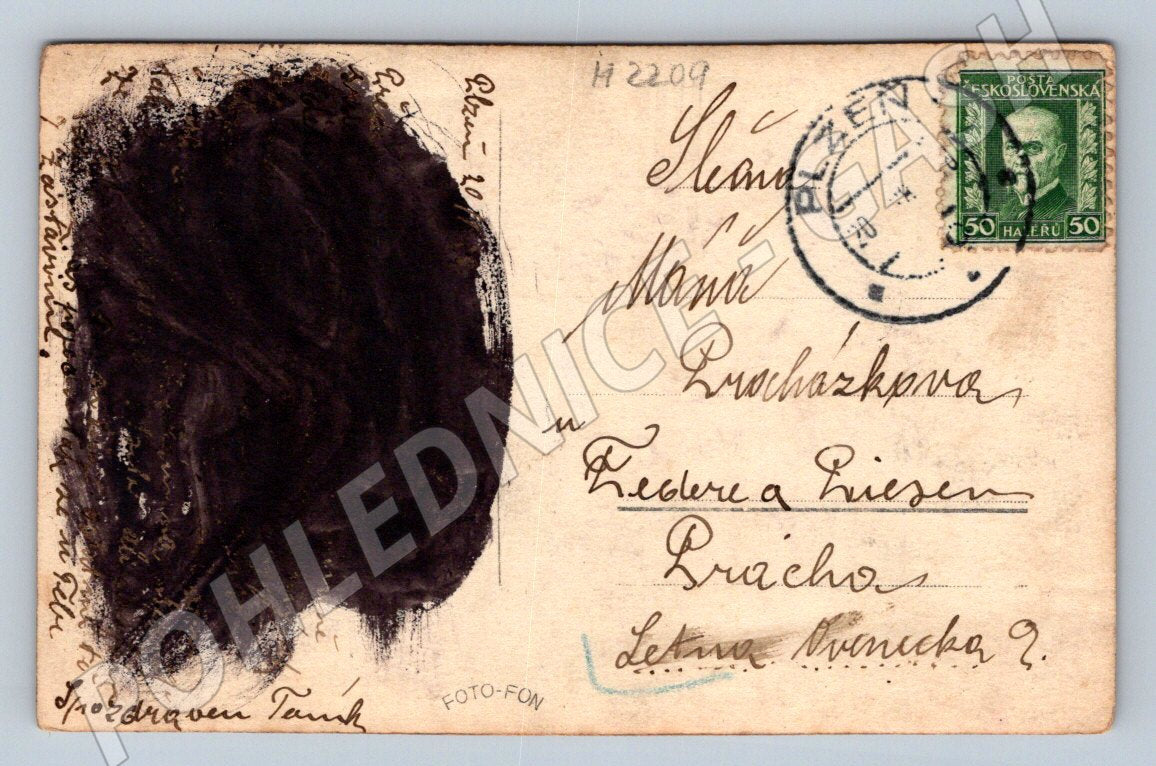 Plzeň, U Wilsonova mostu – historická pohlednice, Štembera, malý formát, prošlá